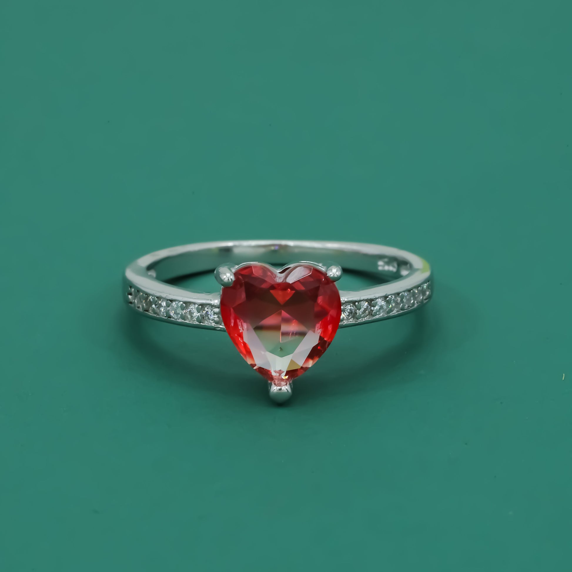 A romantic expression in solid 925 sterling silver, this ring features a vivid heart-cut red zircon and a shimmering zircon-studded band. Elegant, timeless, and perfect for gifting love.