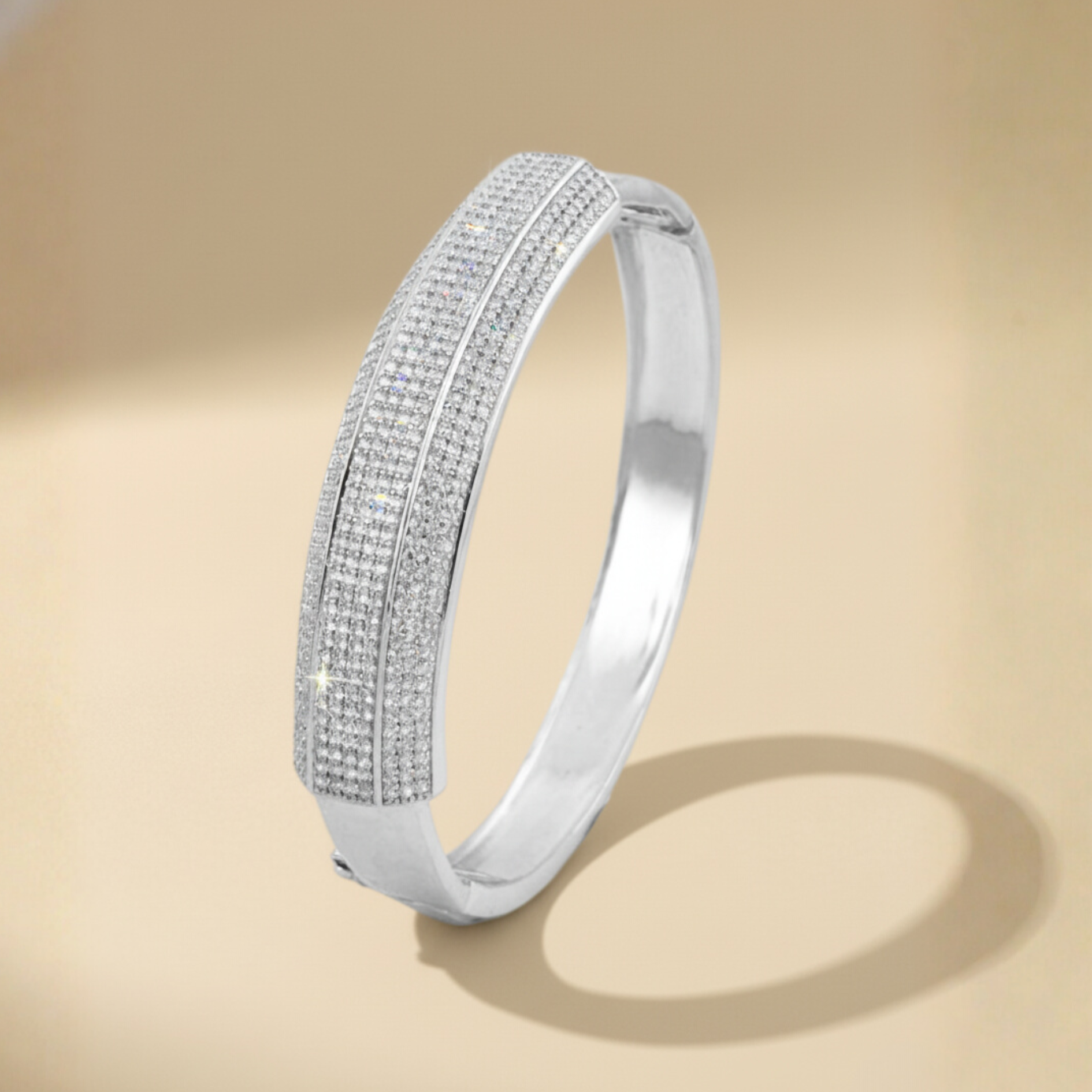 ✔ Wide-band kada with full-surface zircon studding in a triple-layered layout